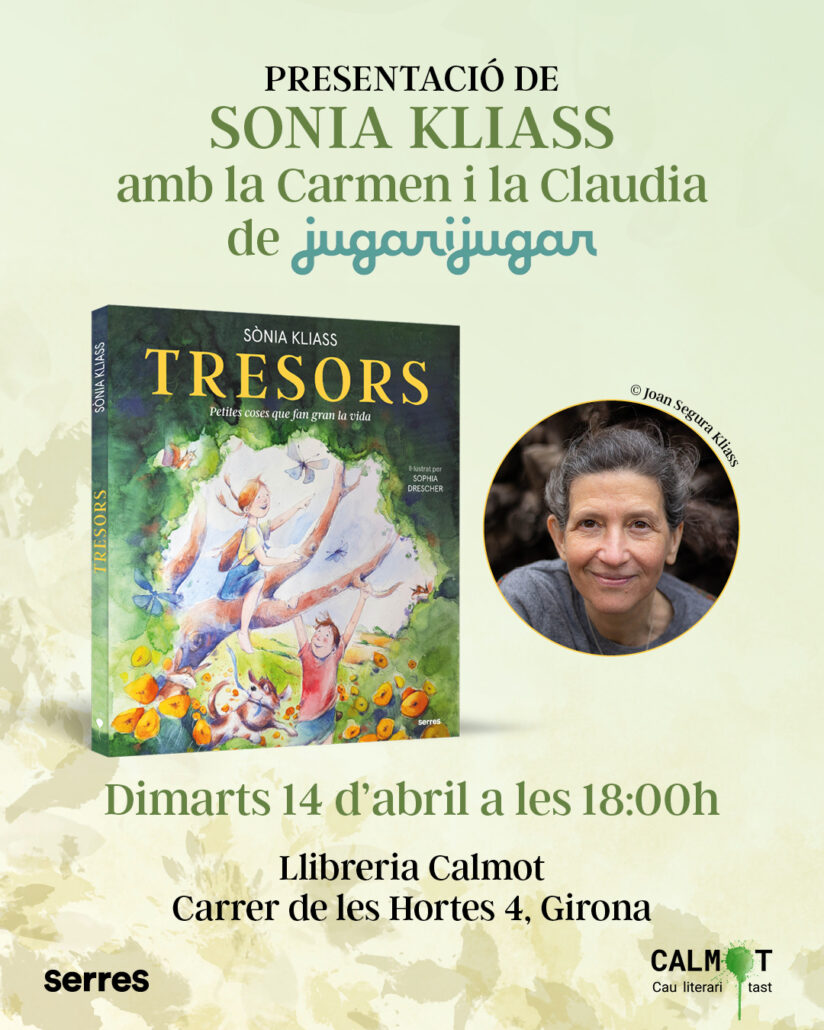 Ens veiem el aquest dimarts 14 d’abril a les 18h 🌱 Ens fa moltíssima il·lusió presentar el primer àlbum il·lustrat de Sonia Kliass, TRESORS. Petits canvis que fan gran la vida, amb l’autora i la Carmen i la Clàudia de Jugar i Jugar 💚 La infantesa està farcida d’instants únics i genuins que fan que aquest […]